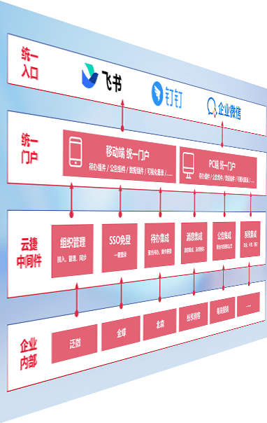 对协作平台提供支持服务,,支持企业应用与协作平台对接,,,包含组织同步、、、、消息集成、、、待办集成等。。支持目前主流的协作平台:钉钉、、、、企微和飞书。。。。